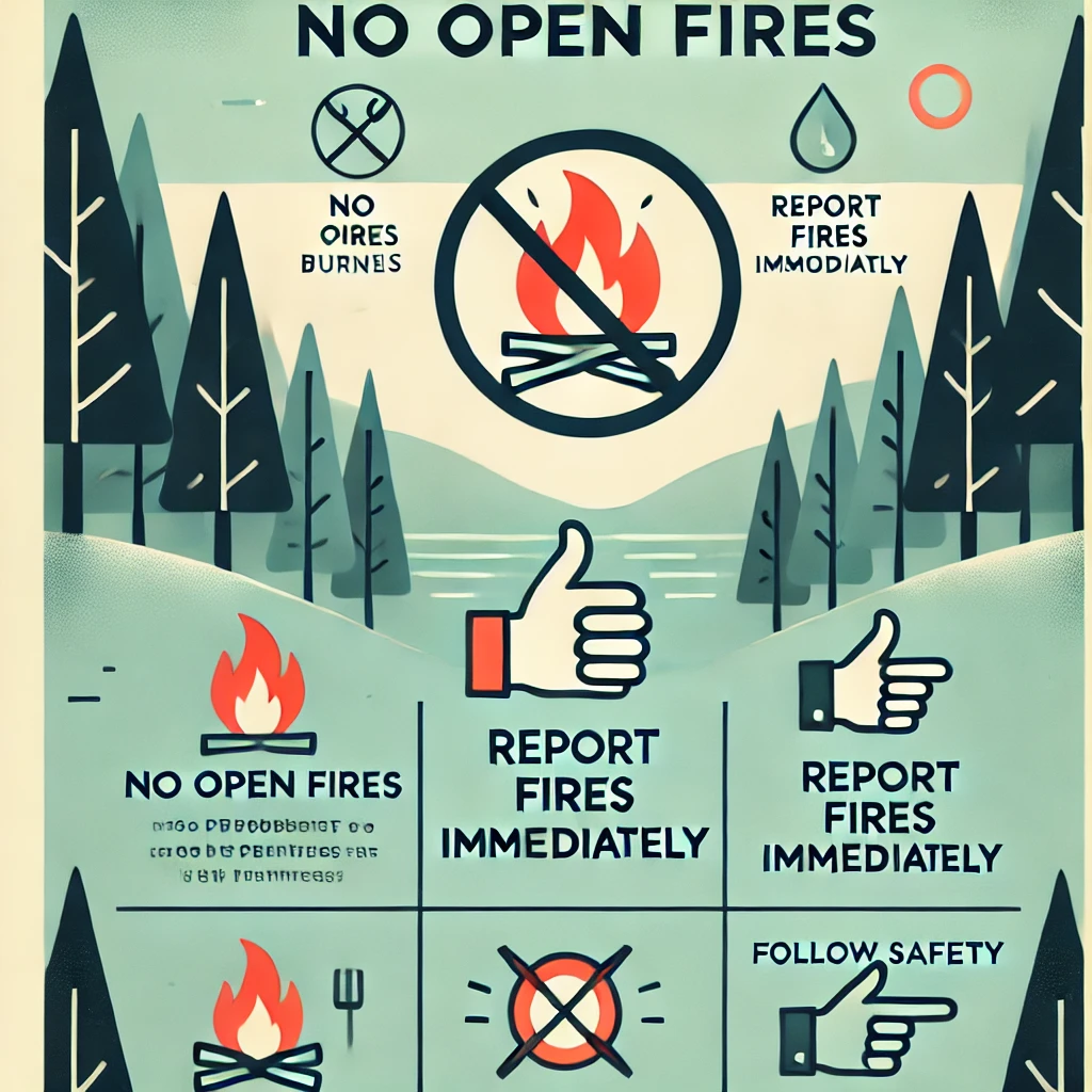 - 산불 위험 지역 출입 통제 준수: 등산로와 입산 통제 구역에 출입하지 않습니다. 산불 방지를 위한 통제 지역을 무단으로 출입할 경우 법적 처벌을 받을 수 있습니다.