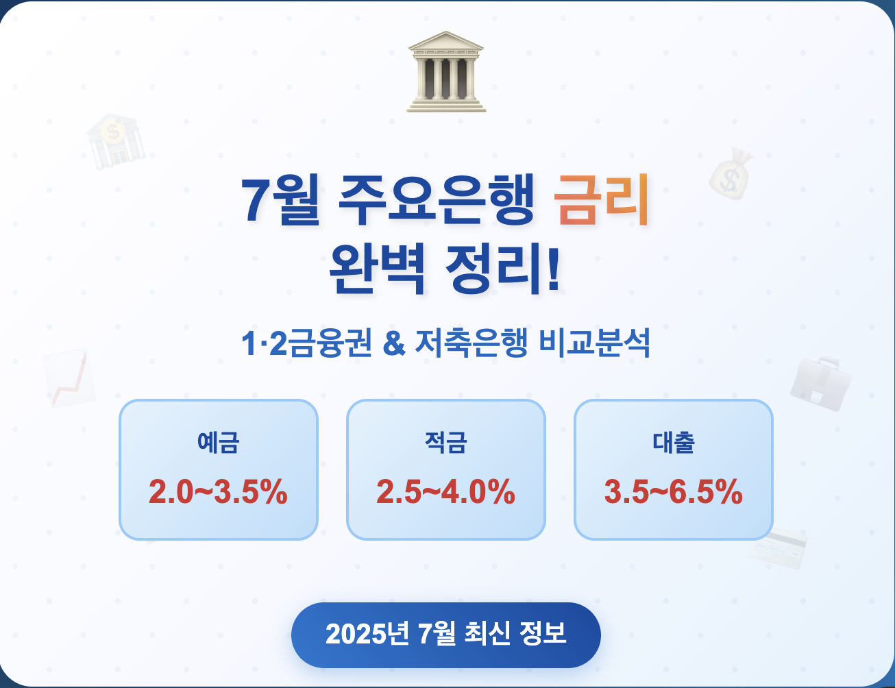 2025년 7월부터 각 은행들의 예적금 금리와 대출 금리가 변동되고 있습니다. 1금융권, 2금융권, 그리고 저축은행은 금리 차이가 존재하지만, 고객의 상황에 따라 더 유리한 조건을 찾을 수 있습니다. 이번 포스팅에서는 주요 은행들의 예적금과 대출 금리를 비교하고, 저축은행의 금리까지 추가하여 모든 금융 상품의 특징을 살펴보겠습니다.