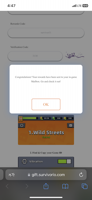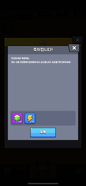 축하합니다. 아이템이 메일함으로 보내졌습니다.