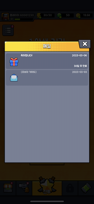 메일을 여시고 [획득] 버튼을 누르시면 아이템을 받을 수 있습니다.